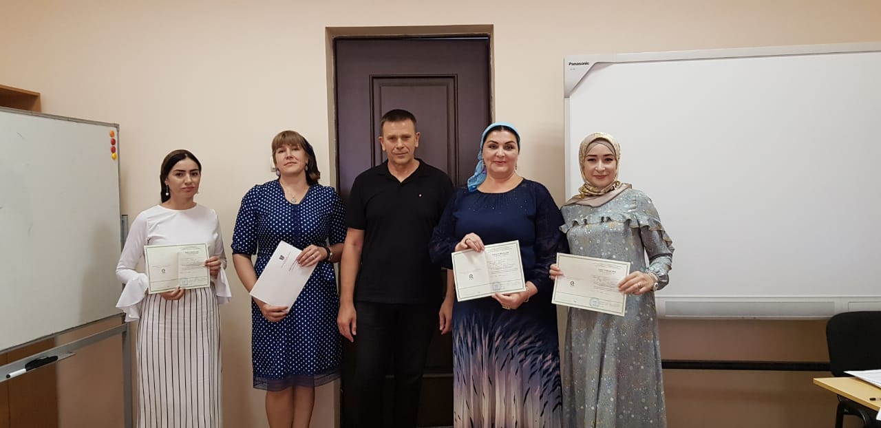 25.08.2019С 29 июля по 10 августа учителя нашей школы, Усмаева Р.Ш., Миронова С.В., Алагова З.Б., Яхъяева М.Р. проходили курсы повышения квалификации "Инновационные практики обучения русскому языку и литературе в поликультурном пространстве".