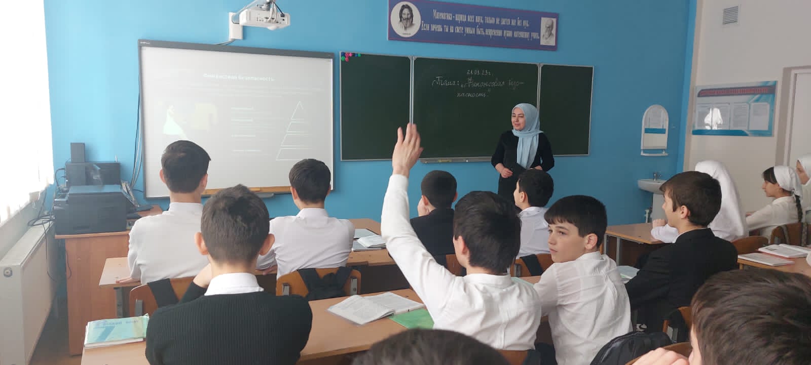 21.03.2023Сегодня 21 марта 2023 г. в МБОУ «Ново-Бенойская СШ им А. А. Кадырова» учителем математики Вовкаевой М. Х. был проведен Всероссийский тематический урок “Финансовая безопасность”. На уроке была представлена презентация по теме “Цифровая безопасность личных финансов» с обучающимися 8 класса.