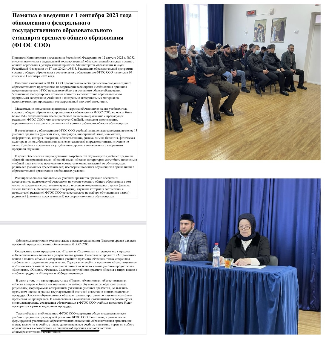 11.02.202311 февраля 2023 г. в МБОУ «Ново-Бенойская СШ им. А. А. Кадырова» провели родительское собрание с родителями обучающихся среднего общего образования «О введении обновленного федерального государственного образовательного стандарта среднего общего образования (ФГОС СОО)».