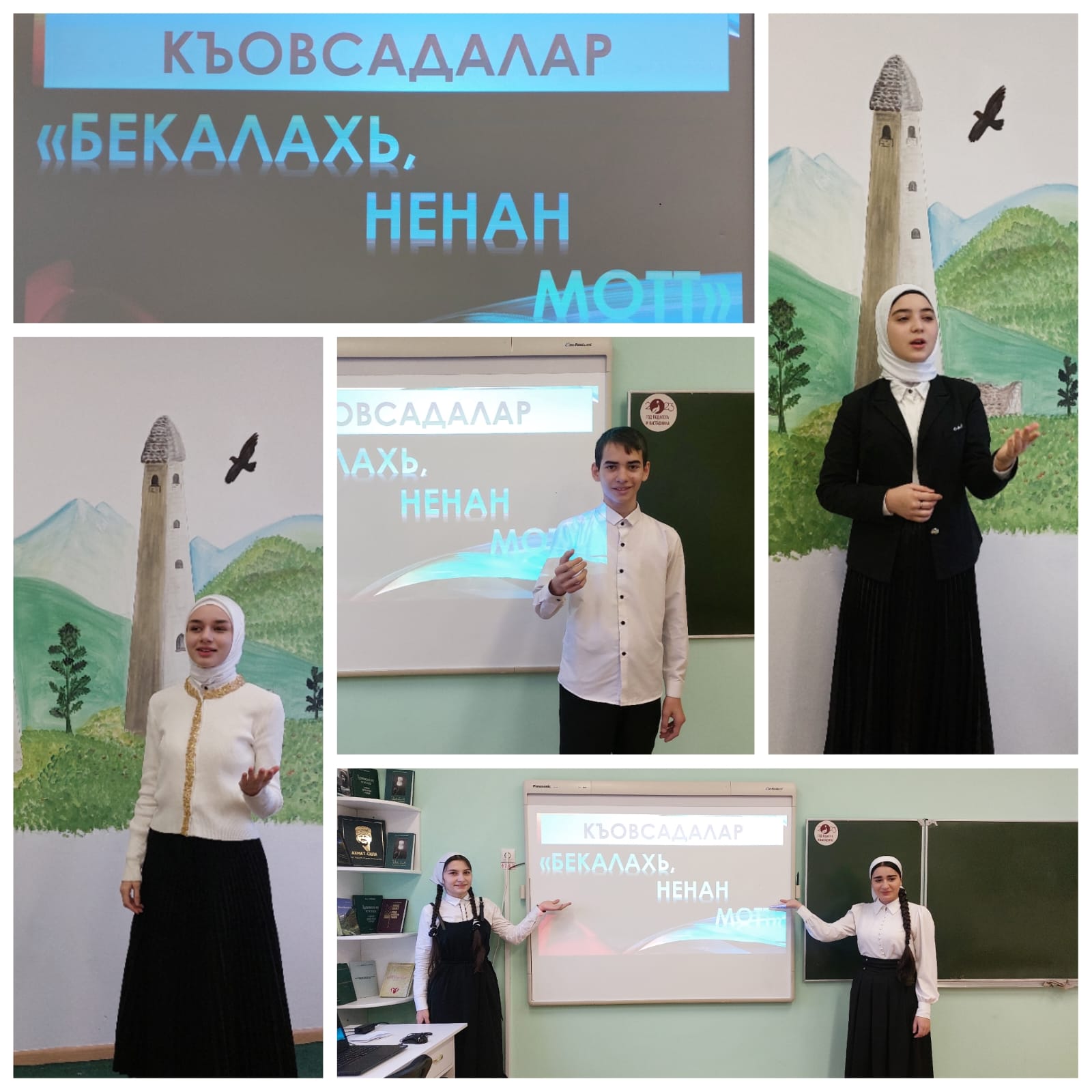 "Кадыров А. А. ц1арах йолчу Керла-Бенарчу йуккъерчу ишколехь", эсаран беттан 5 дийнахь, Нохчийн меттан шеран гурашкахь, 9-11-чуй классашна йукъахь д1абаьхьира "Бекалахь Ненан мотт" ц1е йолу байташ йешаран къовсам.