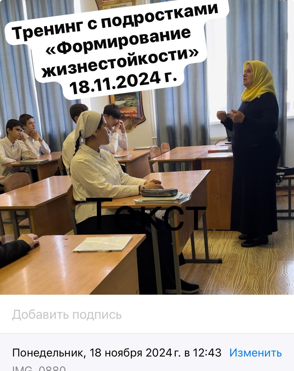 Тренинг "Формирование жизнестойкости".