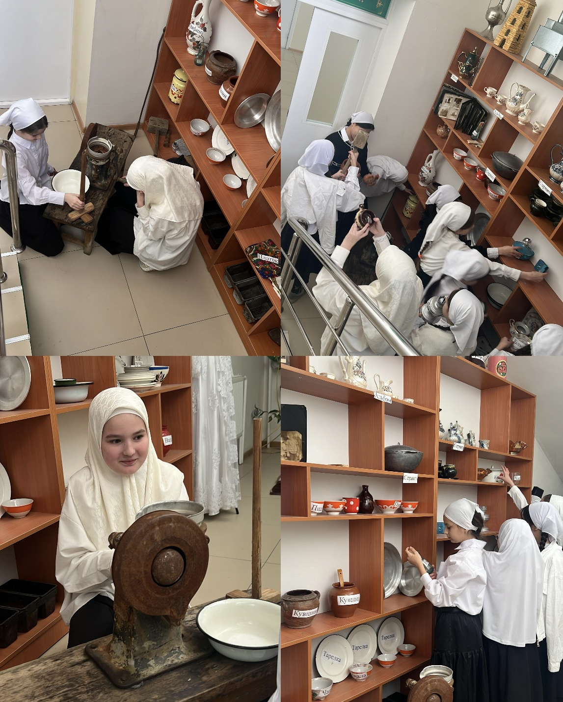 В ходе урока ребята рассматривали различные артефакты, такие как старинные предметы быта, документы, фотографии и другие реликвии, которые иллюстрировали жизнь в регионе в разные исторические эпохи. Экспонаты вызывали живой интерес и задавали основу для обсуждений: ученики могли делиться своим мнением о том, как эти вещи могли использоваться и какую ценность они имеют.