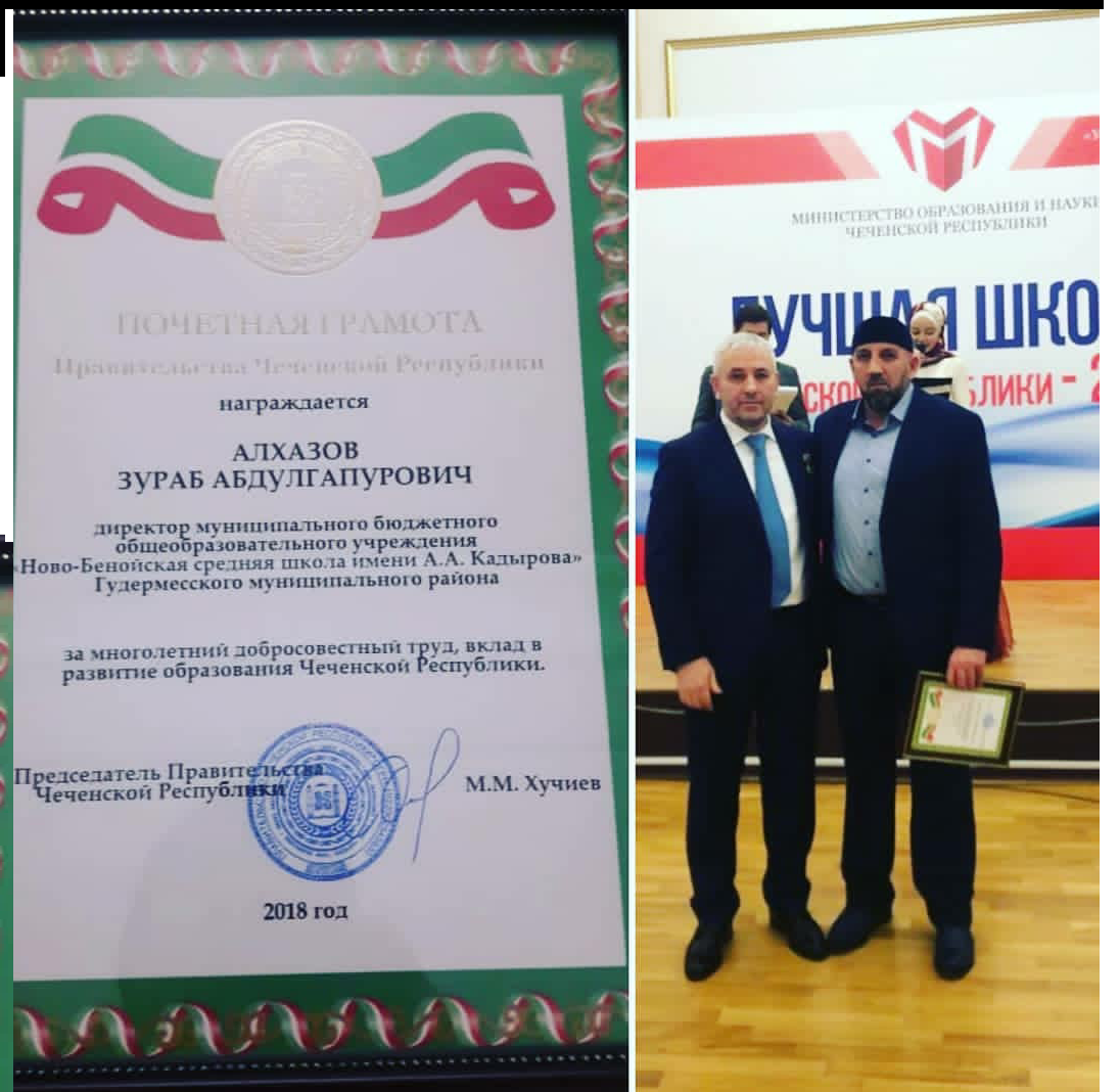 Поздравляем директора МБОУ"Ново-Бенойская СШ ИМ.А.А Кадырова" Алхазова З.А. @zurab_alkhazov с получением заслуженной награды!